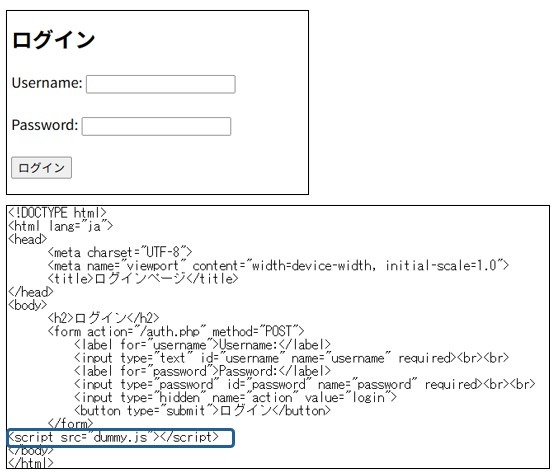 以下は今回の確認用に用意した簡易的なログインフォームとそのソースコードです。