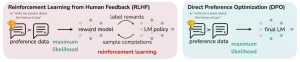 このRLHFが抱える複雑性や演算コストといった課題を解決し、単一の関数最適化によってAligningを実現することができる手法がDPO(Direct Preference Optimization)です。