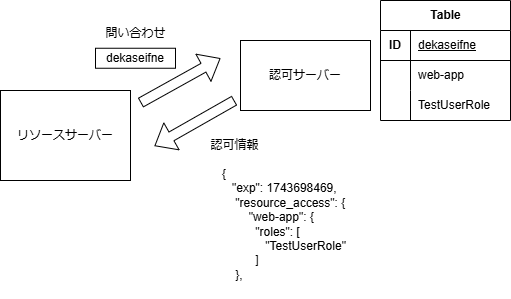 アクセストークン自体は意味を持たない単純な文字列であり、この文字列をキーとして認可サーバーに問い合わせを行うことで、アクセストークンの有効性とユーザー情報を取得する方法となります。