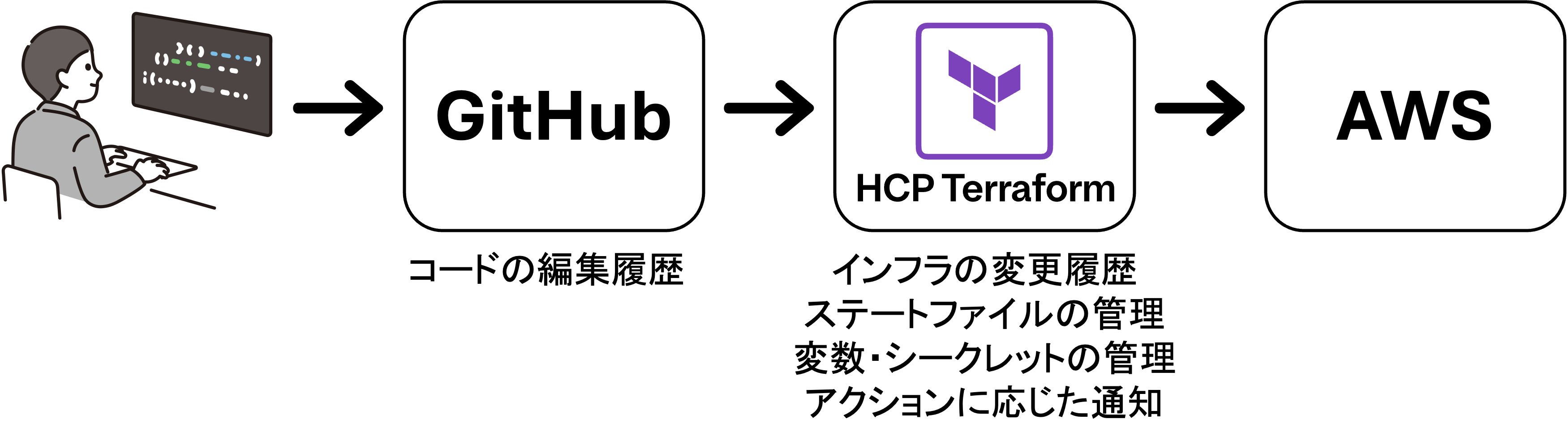 さて、ここまでの作業でHCP Terraformを利用したインフラ構築の基本的な流れを一通り実行できました。ローカルで環境を準備するときと比べれば下記のような作業が楽になると思います。