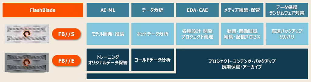 2025年現在、販売されているPure Storage FlashBladeのモデルは、S・Eシリーズです。
