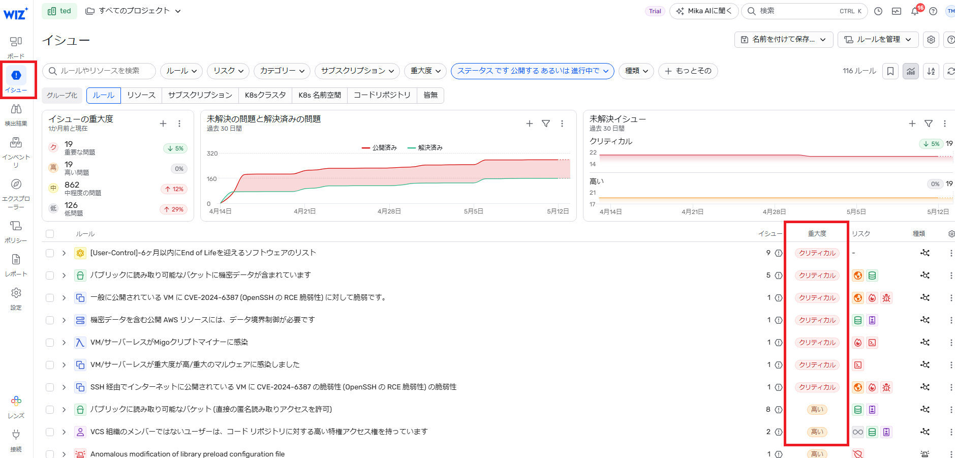 Issueの深刻度は、Wizのリサーチチームによって分類されています。