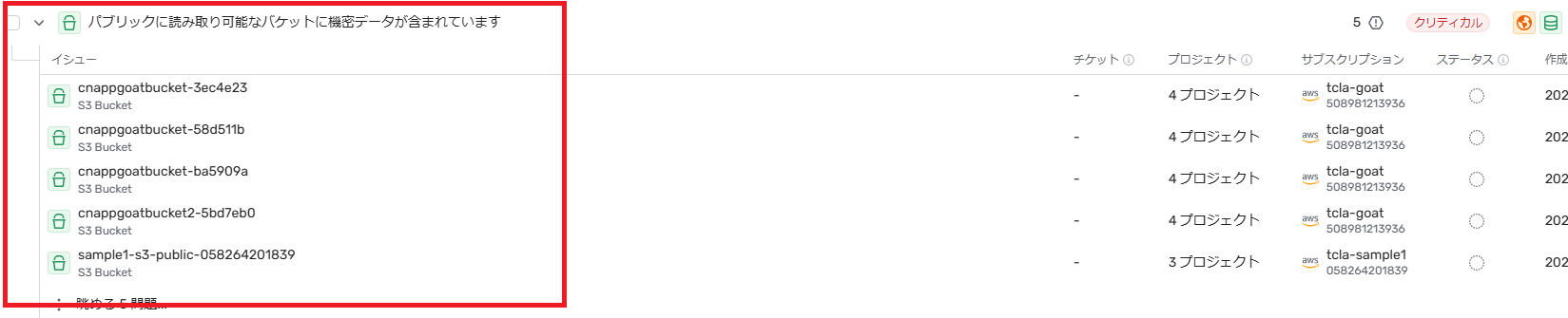 - Issueの種類をクリックすることで、同じリスクを持つすべてのリソースが表示されます。
