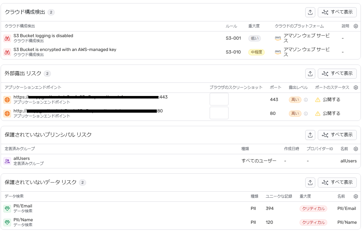 例:公開状態のデータベースに、PII(個人識別情報)を含む可能性のあるデータが保管されており、さらにそのデータベースに対して高い権限を持った仮想マシンが、ネットワーク上の脆弱性を通じて接続可能だった場合。