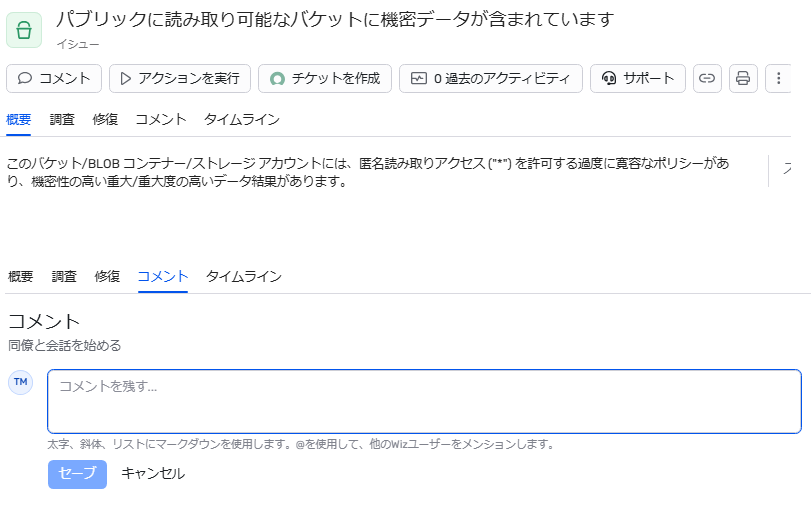 WizのIssue詳細ドロワー(画面上部)には、対応を開始するための各種ツールが用意されています。