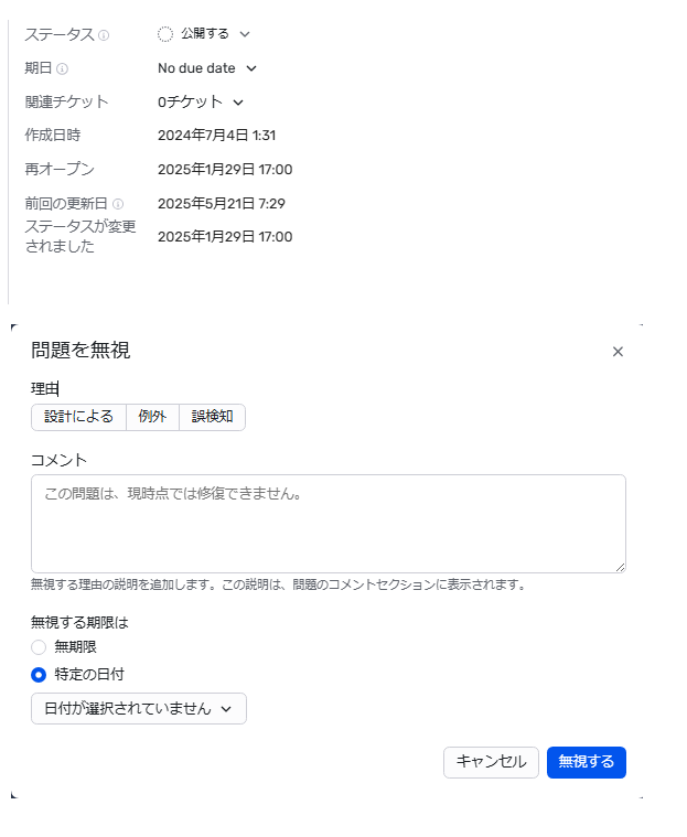 - 対象となる条件(例:重大度がHigh以上のIssue)