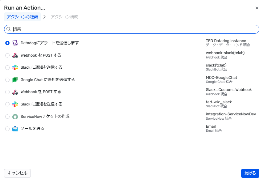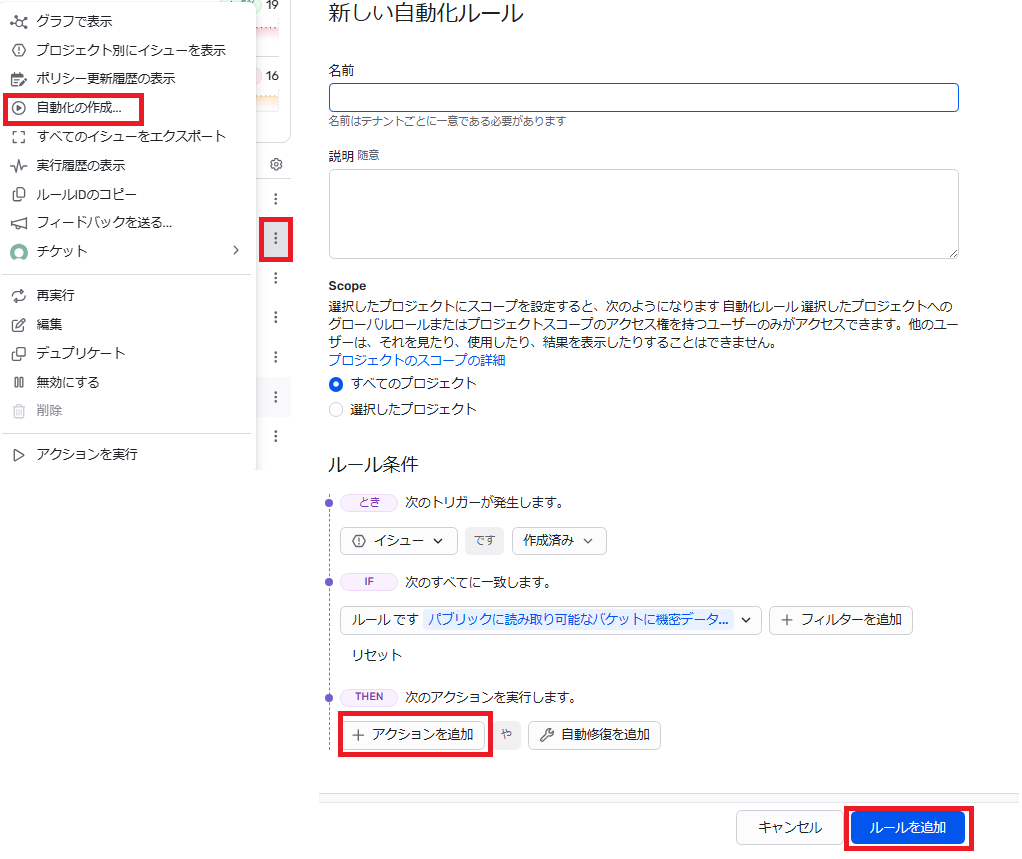 - 実行するアクション(例:JIRAでチケットを作成、Slackに通知)