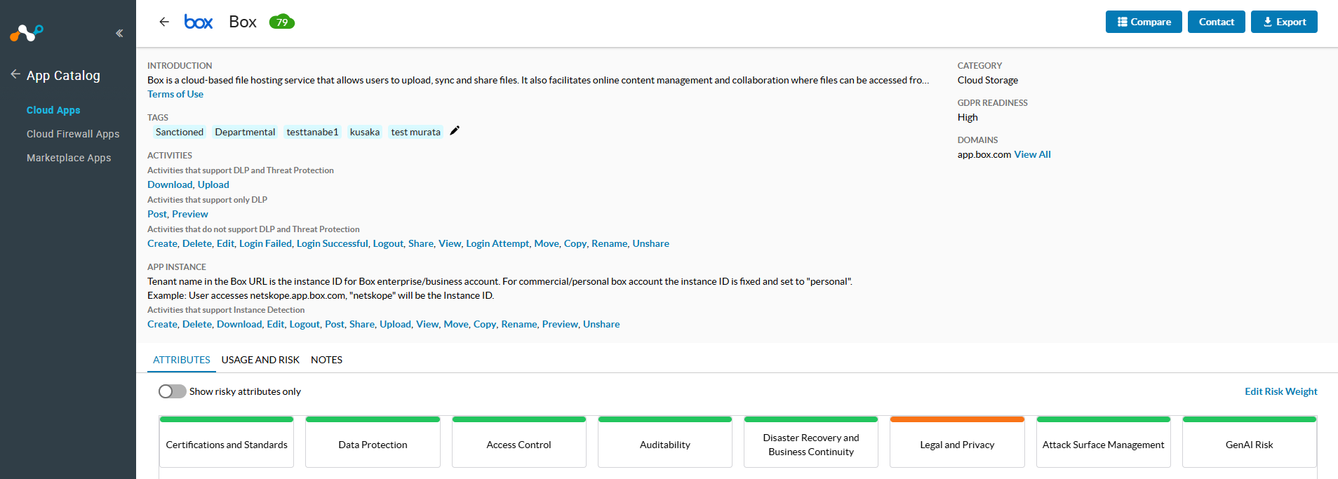 続いては、今回名称が変更されたNetskopeの特徴の一つである「App Catalog(旧称CCI)」の機能について紹介します。