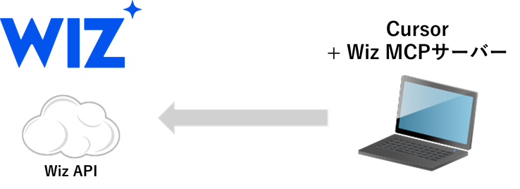 MCPクライアントはCursorを使いました。私のPC環境はWindowsですが、私自身Linuxの方がこの手の操作は慣れているので、WSL(Windows Subsystem for Linux)上にWiz MCPサーバーであるPythonコードを配置し利用しています。Wiz MCPサーバーがWiz APIにアクセスし情報を収集しています。