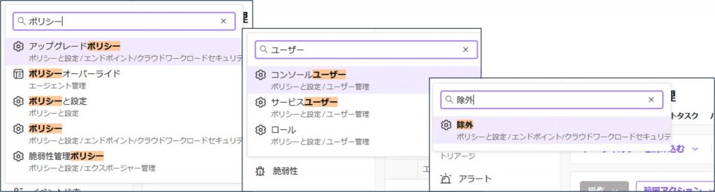 そんな状況を一歩前に進めるためには、管理コンソールバージョンS-25.2.1より実装された サーチ機能が役に立ちます。