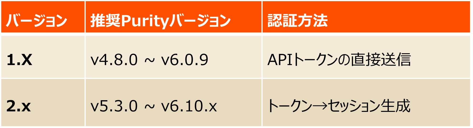 REST APIには、主に以下の2つのバージョンがあります。(下記記載の推奨Purityバージョンは2025/12時点のものです)