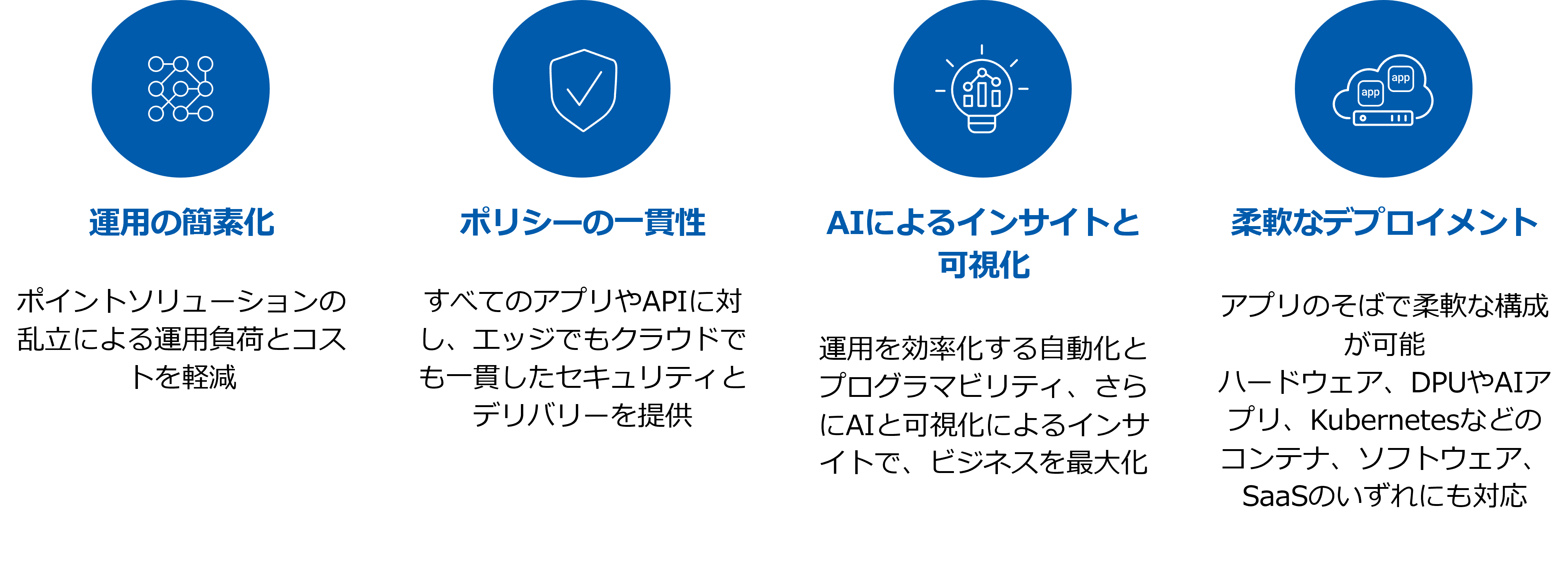 ネットワーク/セキュリティ/アプリ/AI チームを横断する共通言語として、統合コンソールやダッシュボード、AI アシスタントなどの運用機能。