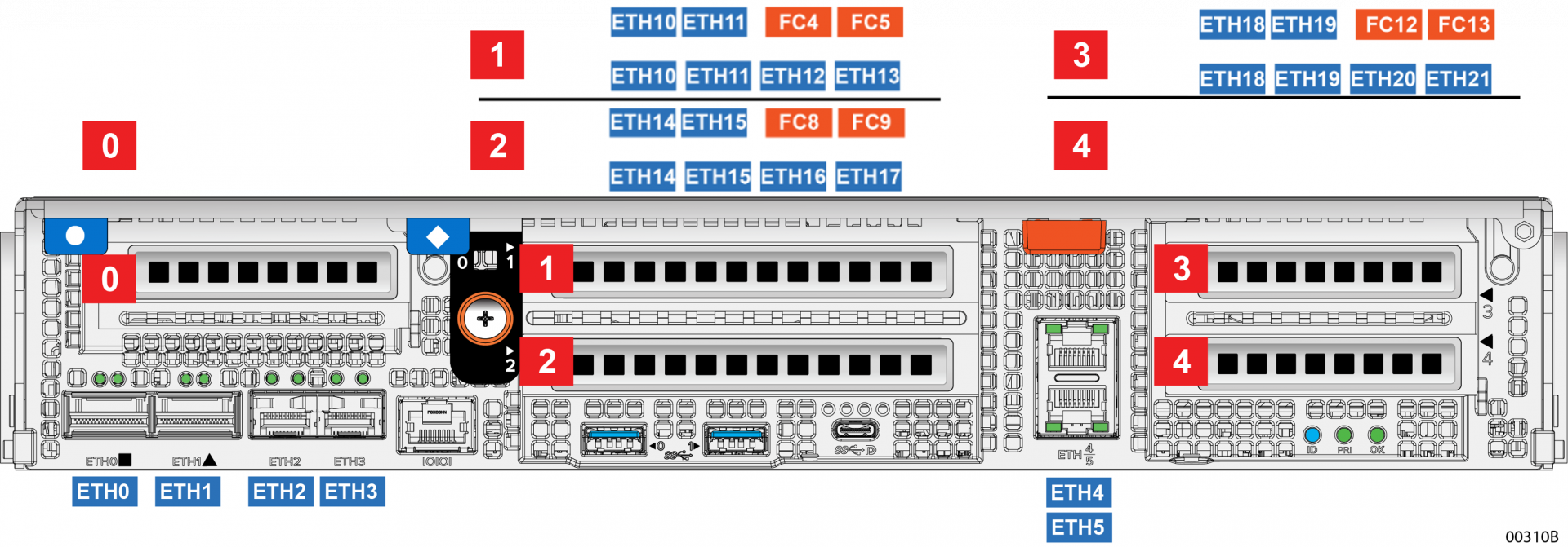 FA-Eのポート名は固定されており、変更することはできません。そのため、例えば、Slot1に2ポートのETHのNICを搭載すると、そのポートは左からETH10とETH11と呼ばれるポートになります。