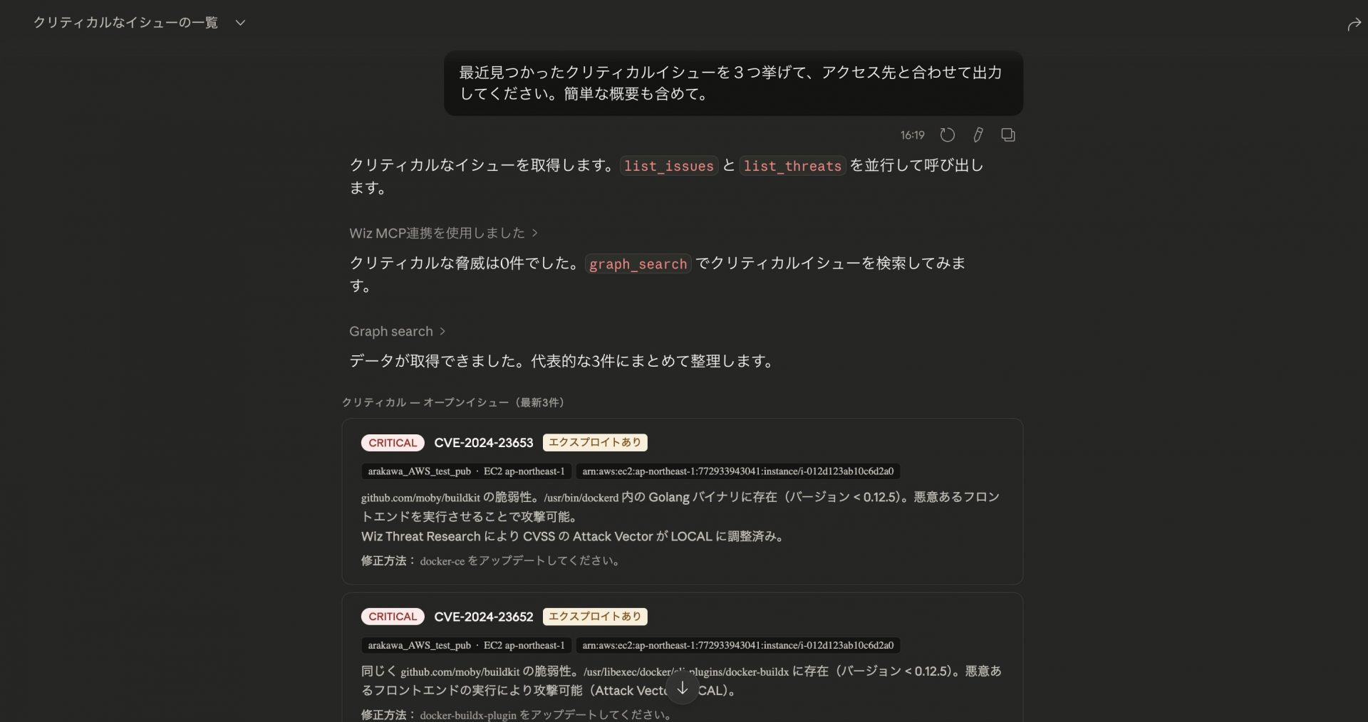 Wiz の特徴のひとつが、イシュー単位で「調査〜修復」の流れが UI にきちんと整理されている ことです。