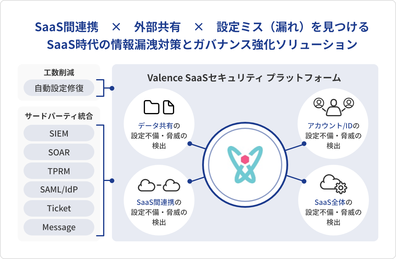 金融機関E社ではSaaSが乱立しており、休眠アカウントやAIツールなどによる情報流出が懸念されていました。Valenceを導入することで、多数のSaaSを横断してセキュリティリスクを検出することができるようになりました。