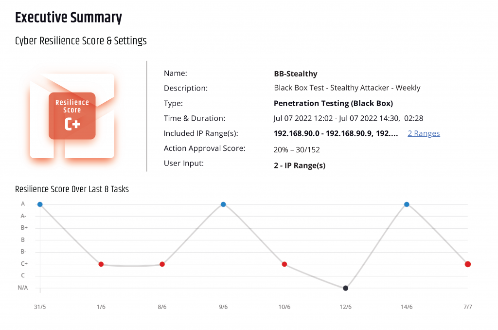 攻撃結果から得られた問題点をスコア付けされてリストアップされます。