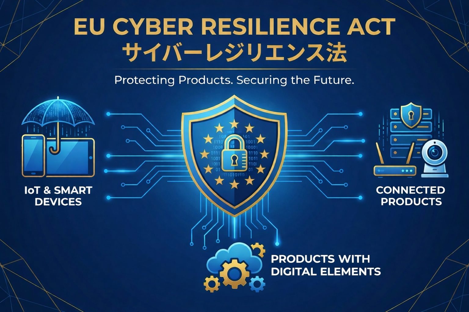 欧州サイバーレジリエンス法(Cyber Resilience Act:CRA)※ は、EU市場で流通する Product with digital elements(デジタル要素を含む製品)に対してサイバーセキュリティ要件を義務付けるEU規則です。スマートフォンやスマート家電などのIoT機器、ソフトウェアに加え、オペレーティングシステムやネットワーク機器など、あらゆるデジタル製品が対象に含まれます。CRAは、製品の設計・開発段階から運用・保守まで一貫したサイバー耐性(Cyber Resilience)の確保を求めるもので、2024年12月に発効、2026年9月から脆弱性報告義務が開始され、2027年12月に全面適用されます。要件を満たさない場合、EU市場での販売停止や、1,500万ユーロまたは全世界売上の2.5%と高額な制裁金といった重大リスクが生じます。すなわち、EU市場に向けてデジタル製品を販売する製造業にとって、このCRAへの準拠が必須となります。